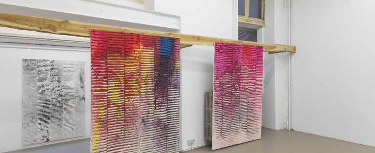 Koen Delaere creates by engaging in a form of performative expression that echoes the spontaneous energy of live music concerts and is not shy of unorthodox methods and experiments to achieve this. Simultaneously, Delaere creates paintings that are clearly directed and from which all coincidence has disappeared. They are autonomous objects: explosions of a deep poetic intensity that finds its way to the viewer through the material and the artists ability to modify it. In his work concept is played off against raw intuition, and structured grids against performative action painting. This is where an art historical richness seeps into the work. Using the idea of grids referring back to modernism, to Mondriaan and Rosalind Krauss. Within Delaeres paintings the grid acts as a mode of organization and serves both as a vehicle for subjectivity as well as a constraint for action. The grid is a formal construction that has to be loaded with life. To achieve this he engages with diverse sources like among others West-Kapelle, Harryette Mullen, early Sonic Youth and Mars Volta, orchids, Aphex Twin, William Gibson etc.