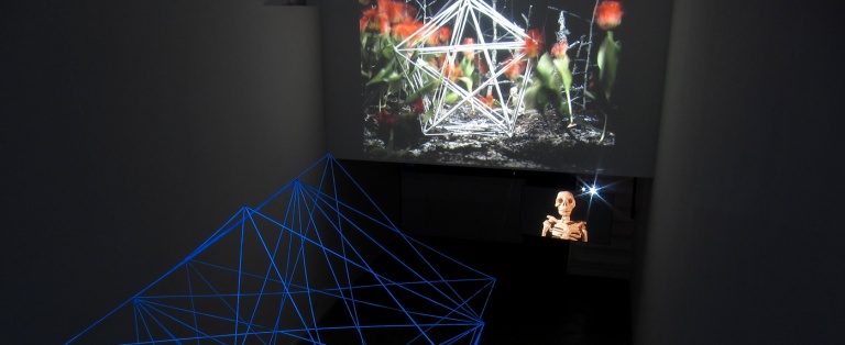 A couple is making love, (small, ever so small…) a vast gigantic leaf and gigantic grass in a garden. A skeleton walks around with his welding machine in a wheelbarrow. Someone’s head turns into a lettuce head.Things disappear, get lost, but are found again as something else, in constant transformation. A spider smokes and plays bass, dreams about a film and makes it happen. A many-armed goddess and a sect of trolls with magical powers create growth and rebirth. A house’s façade falls down while the door remains standing. Alternative realities open up to those who might need a wider life beyond obvious structures and norms. Enchantment as a morphological principle mixed with a playfulness, both serious and ecstatic, runs energetically through the artistic couple’s work.